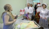 Парламентарий поздравил мам Витебского областного клинического родильного дома с Новым годом и вместе с Дедом Морозом и Снегурочкой вручил им подарки.