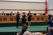Во время сессии состоялась церемония чествования победителей соревнования среди органов местного самоуправления за 2020 год.