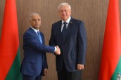 По завершению встречи Михаил Мясникович вручил Сайфулу Хоку Почетную грамоту Национального собрания Республики Беларусь.