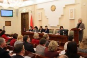 Председатель республиканского общественного объединения «Белорусский союз женщин», первый заместитель Министра здравоохранения Елена Богдан тезисно представила основные направления развития системы охраны материнства и детства в контексте подписанного Главой государства нового Закона «О здравоохранении».