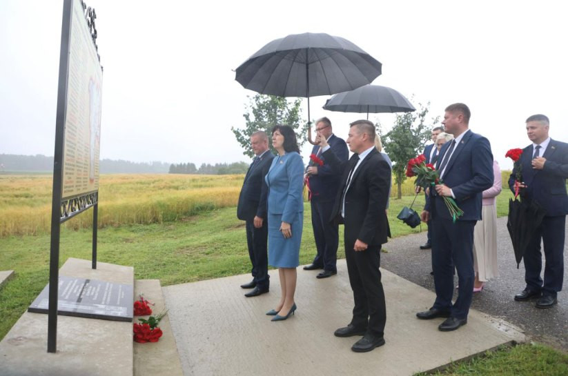 По окончании встречи Председатель Совета Республики Наталья Кочанова возложила цветы к мемориалу в деревне Сынковичи на Аллее сожженных деревень. Участники мероприятия почтили память более 5 тысяч мирных жителей, зверски уничтоженных нацистами в годы Великой Отечественной войны.