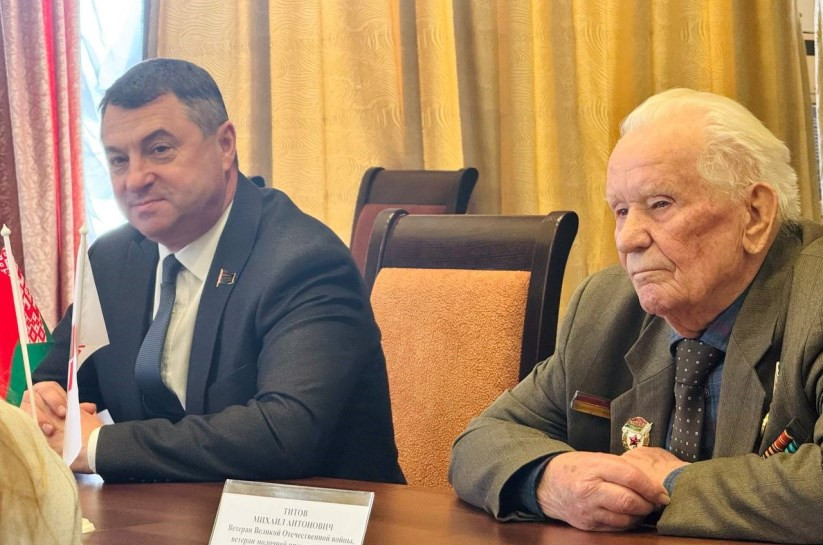 На встрече присутствовал Михаил Антонович Титов — участник Великой Отечественной войны, ветеран молочной промышленности, стоявший у истоков строительства Могилевского молочного комбината.