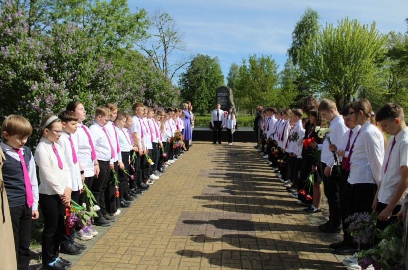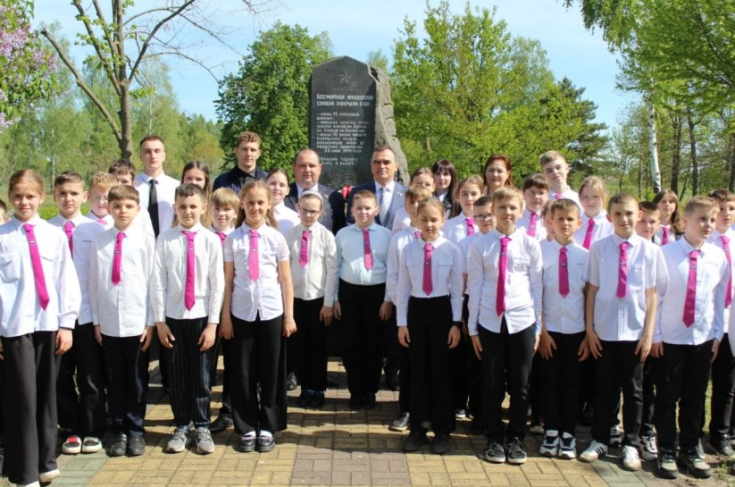 Во время митинга, в котором участвовали учащиеся и педагоги районной гимназии, была открыта табличка с QR-кодом возле памятного знака в честь 40-летия освобождения Малоритского района от немецко-фашистских захватчиков.