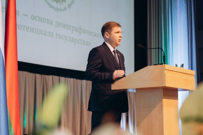 13 мая 2025 г. председатель Постоянной комиссии Совета Республики Национального собрания Республики Беларусь по образованию, науке, культуре и социальному развитию Сергей Сивец принял в международном форуме «Семья — основа демографического потенциала государства».