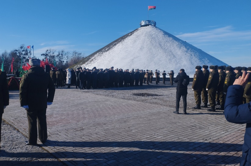 Участники возложили цветы к памятнику советским воинам, партизанам и подпольщикам, погибшим в годы Великой Отечественной войны. В парадном строю по территории мемориального комплекса прошли сводные расчеты военнослужащих Гродненского гарнизона.