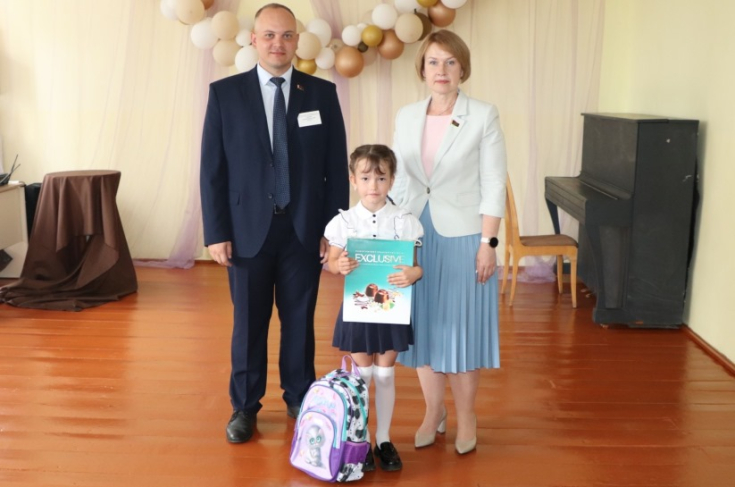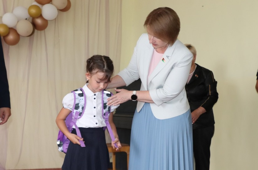 Екатерина Зенкевич в рамках акции «Соберем портфель первокласснику» вручила ранец и набор школьных принадлежностей, а также сладости Полине Цюрик, которая 1 сентября пойдет в первый класс ГУО «Антоновская средняя школа Жлобинского района».