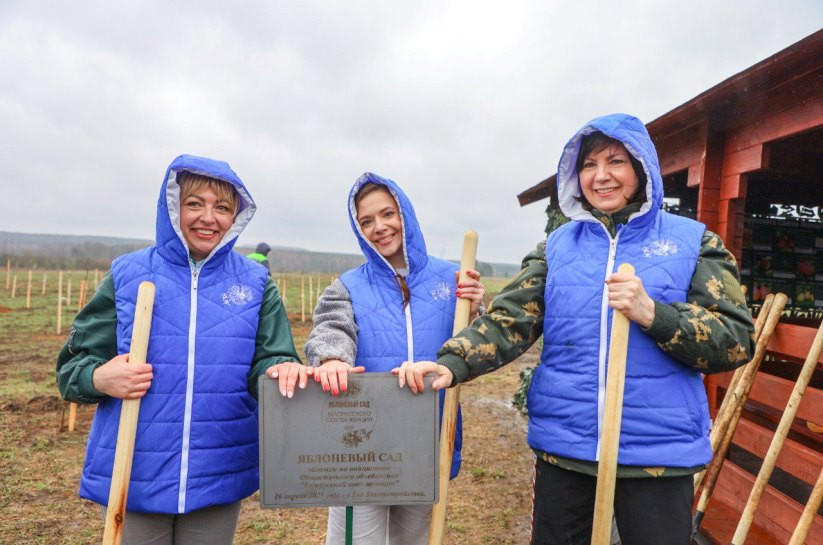 16 апреля 2025 г. Председатель Совета Республики Национального собрания Республики Беларусь Наталья Кочанова приняла участие в торжественной церемонии посадки первого яблоневого сада ОО «Белорусский союз женщин».