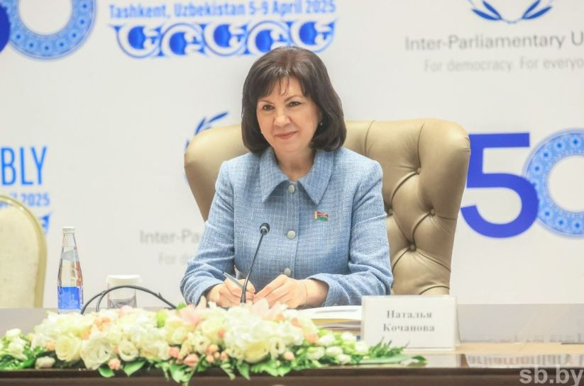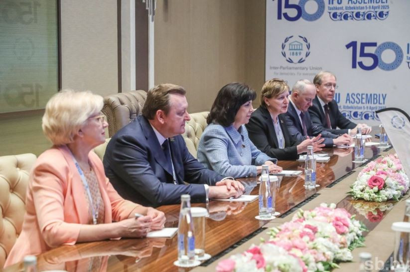 6 апреля 2025 г.Председатель Совета Республики Национального собрания Республики Беларусь Наталья Кочанова на полях 150-й Ассамблеи Межпарламентского союзав Ташкенте встретилась с председателем этой организации Тулией Эксон.