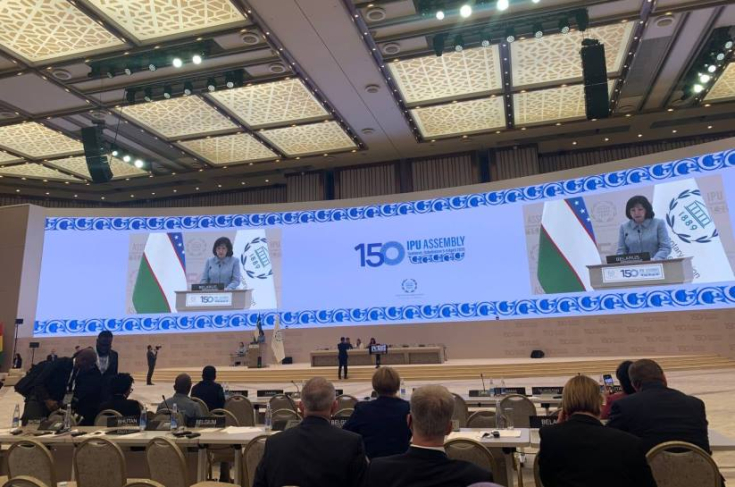 6 апреля 2025 г. Председатель Совета Республики Национального собрания Республики Беларусь Наталья Кочанова выступила на общих дебатах 150-й Ассамблеи Межпарламентского союза.