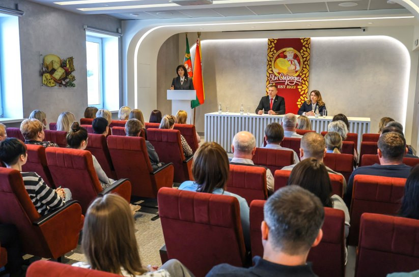 Наталья Кочанова также ознакомилась с деятельностью ОАО «Верхнедвинский маслосырзавод», в сопровождении директора завода Светланы Чивировой посетила цех по производству сыров.