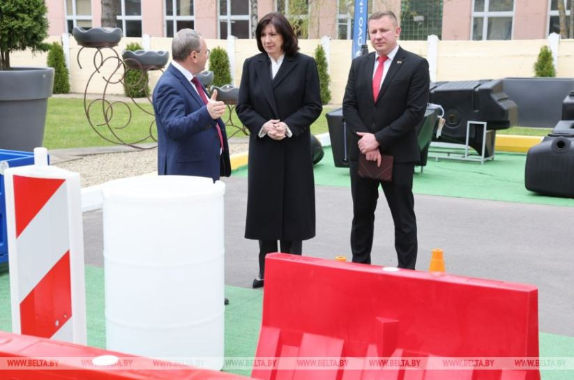 Председатель Совета Республики на выставке познакомилась с продукцией предприятия. Это пластиковые изделия для бытовых нужд, озеленения городов, машиностроительных заводов, а также сельскохозяйственные боксы для выращивания телят.