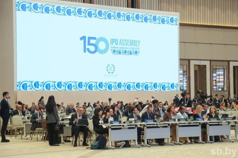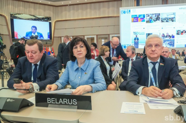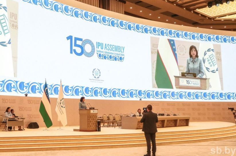 6 апреля 2025 г. Председатель Совета Республики Национального собрания Республики Беларусь Наталья Кочанова выступила на общих дебатах 150-й Ассамблеи Межпарламентского союза.