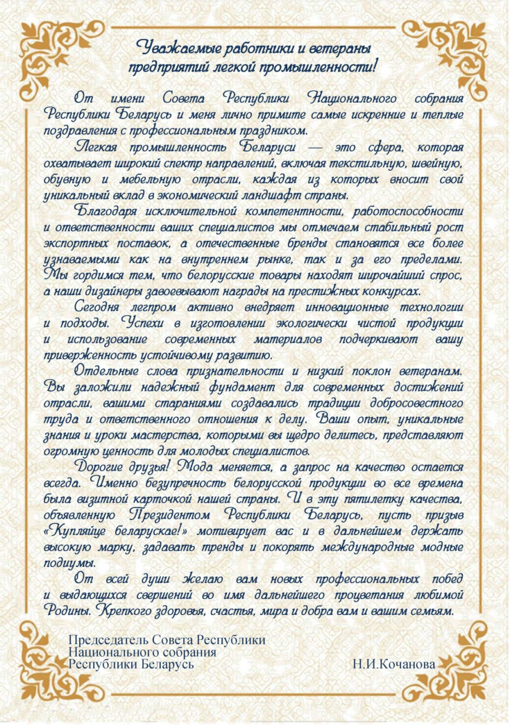 Председатель Совета Республики Н.Кочанова направила поздравления Председателю Совета Шуры Национальной ассамблеи Королевства Бахрейн