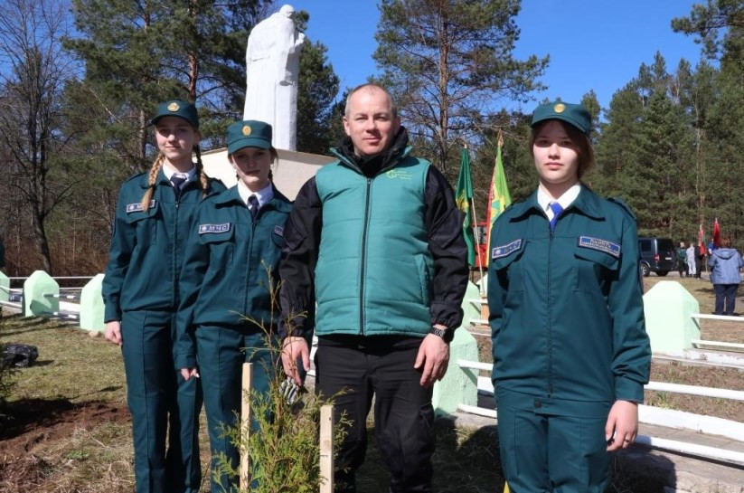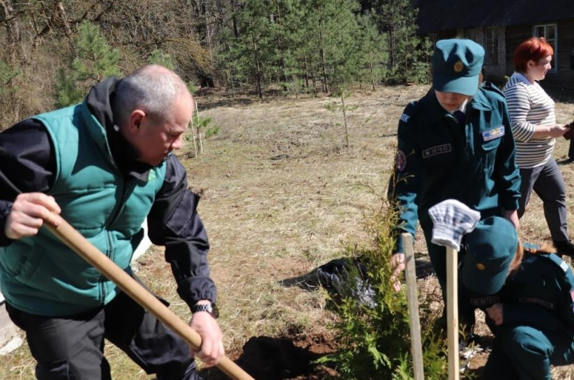 Участники акции — представители местных органов власти и лесохозяйственного учреждения, спасатели и молодежь — на территории мемориала высадили туи и сосны в знак вечной памяти о погибших в годы Великой Отечественной войны.
