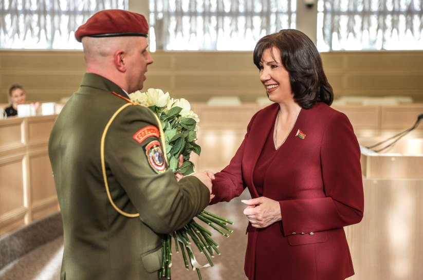 Наталья Кочанова рассказала женщинам-военнослужащим о работе законодателей, широком спектре направлений деятельности сенаторов, работе Совета Республики с обращениями граждан и подчеркнула: «Наше общество стало поднимать не только традиционные бытовые проблемные темы, но и вопросы семейно-нравственных ценностей, думать о будущем. И это не может не радовать. Поэтому мы весьма благодарны вам за организованную вами работу по созданию военно-патриотических клубов, правильному воспитанию подрастающего поколения. Молодежи надо рассказывать правду — это позволит всем нам избежать многих сложностей и проблем».