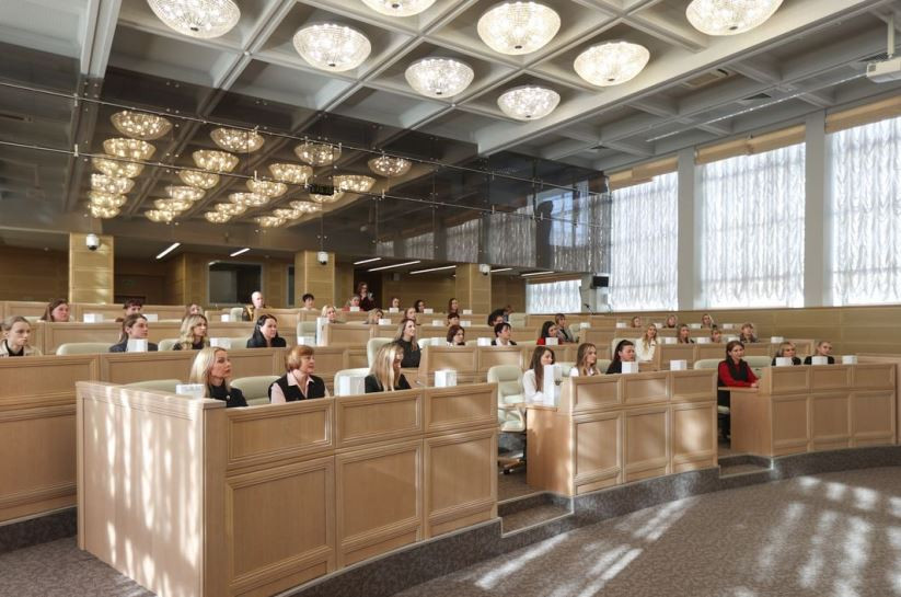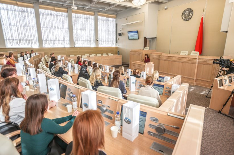 В преддверии встречи с Председателем Совета Республики для гостей была проведена экскурсия по зданию Совета Республики Национального собрания Республики Беларусь, в ходе которой женщины-военнослужащие ознакомились с основными направлениями деятельности Совета Республики.