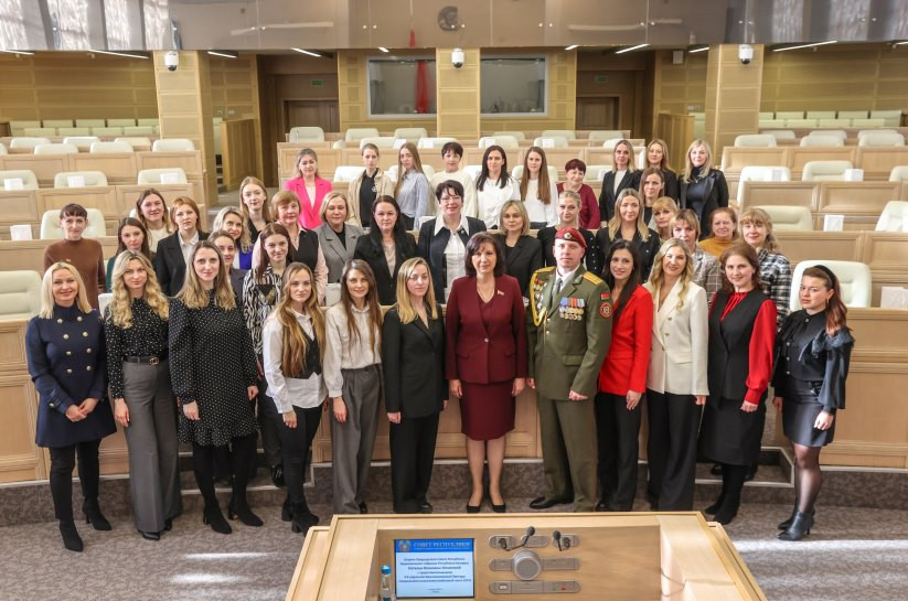 6 марта 2025 г. Председатель Совета Республики Национального собрания Республики Беларусь Наталья Кочанова в формате диалоговой площадки проводит встречу с женщинами-военнослужащими 3-й отдельной Краснознаменной бригады специального назначения (войсковой части 3214).