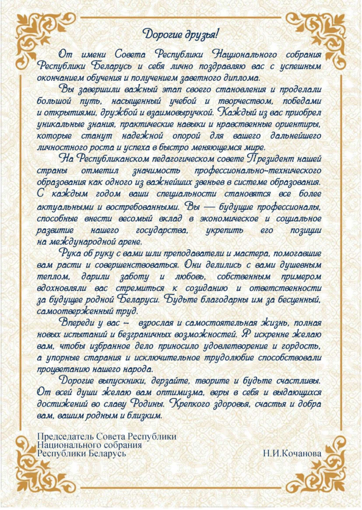 Председатель Совета Республики Н.Кочанова направила поздравления Председателю Совета Шуры Национальной ассамблеи Королевства Бахрейн