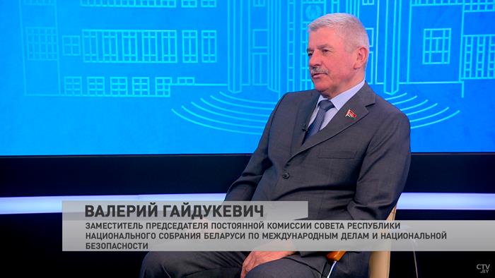 Заместитель председателя Постоянной комиссии Совета Республики по международным делам и национальной безопасности, председатель Белорусского союза ветеранов войны в Афганистане Валерий Гайдукевич в программе «Сенат» СТВ о международной обстановке, патриотизме и гражданско-патриотическом воспитании