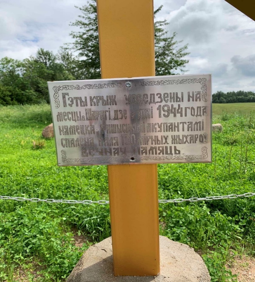 В память о трагедии на месте сожженной деревни Шараги Глубокского района при непосредственном участии Олега Жингеля был открыт мемориал жертвам Великой Отечественной войны с поклонным крестом.