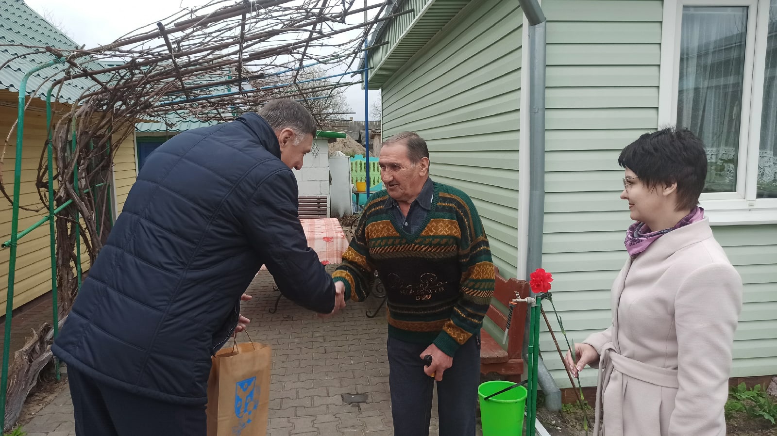 Член Постоянной комиссии Совета Республики по образованию, науке, культуре и социальному развитию Анатолий Шолтанюк. Поздравление с Днем Победы узника фашистских концлагерей Пукита Ивана Алексеевича. д. Ходосы, Жабинковский район. 26.04.2022