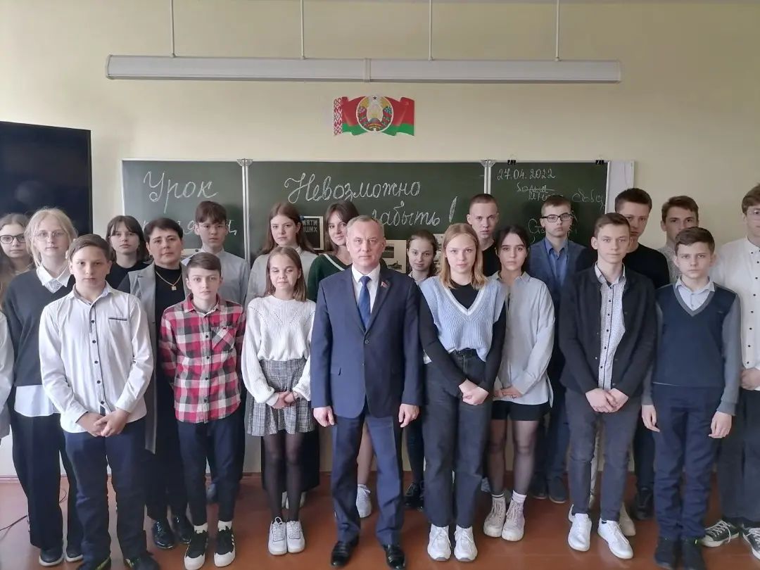 Член Постоянной комиссии Совета Республики по образованию, науке, культуре и социальному развитию Игорь Гедич провел урок Памяти в ГУО «Гродненская городская гимназия», Гродно, 29.04.2022