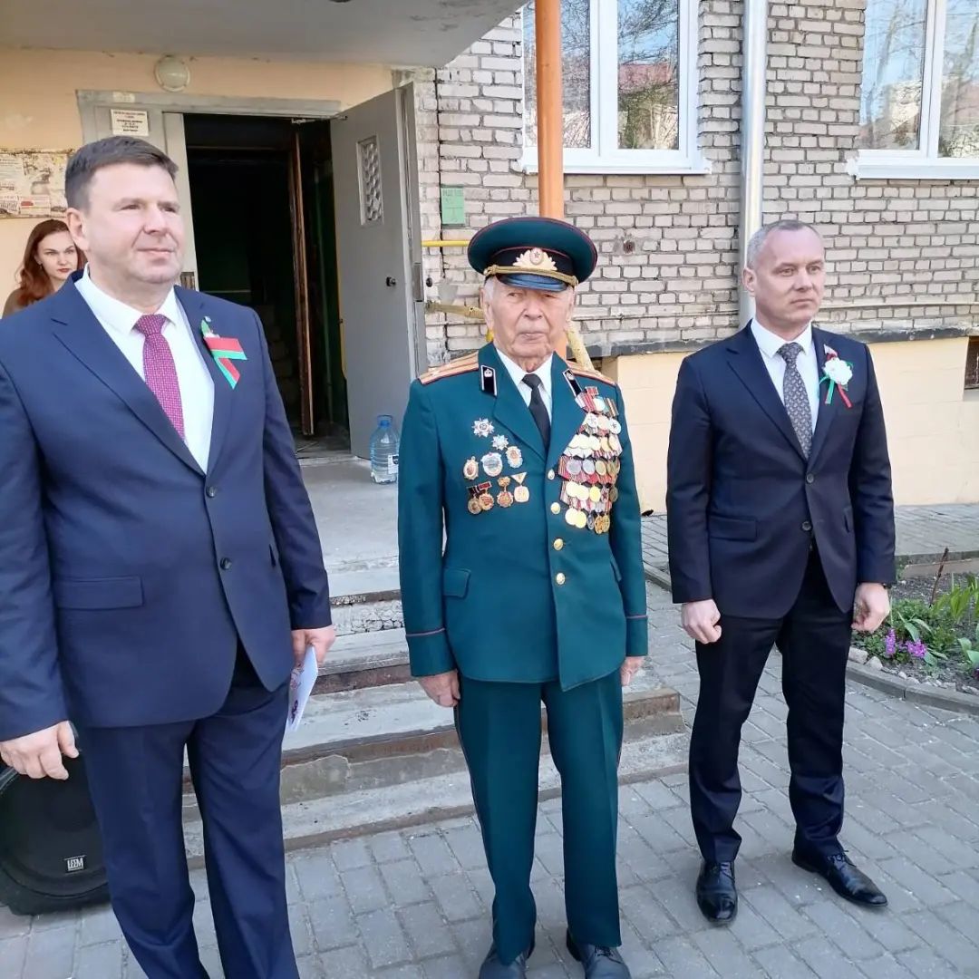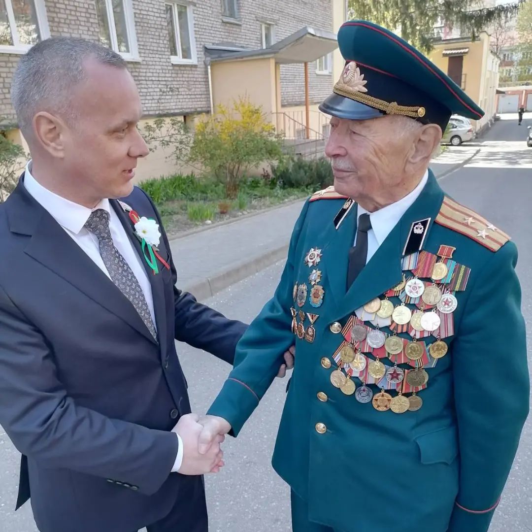 Член Постоянной комиссии Совета Республики по образованию, науке, культуре и социальному развитию Игорь Гедич совместно с главой администрации Октябрьского района г. Гродно Олегом Белинским поздравили с наступающим Днем Победы ветерана Великой Отечественной войны полковника в отставке Владимира Федоровича Колесникова, Гродно, 05.05.2022