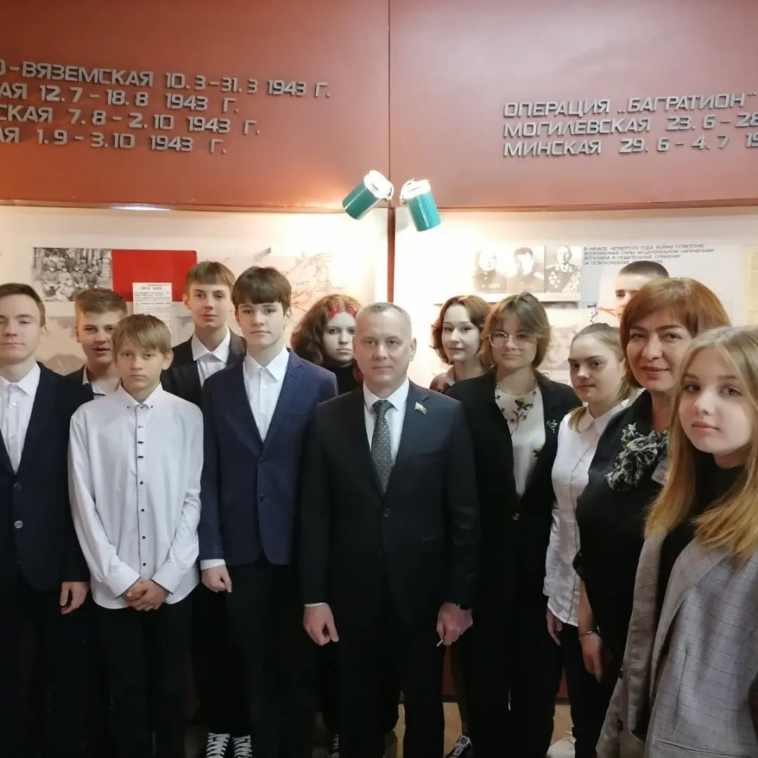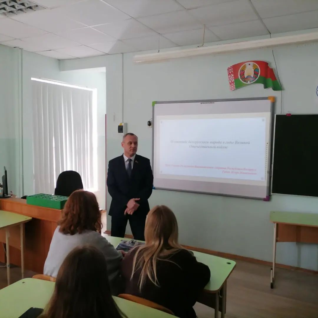 Член Постоянной комиссии Совета Республики по образованию, науке, культуре и социальному развитию Игорь Гедич провел урок Памяти, посвященный Великой Победе советского народа над фашистскими захватчиками состоялся на базе ГУО «Гимназия 5 г. Гродно», 05.05.2022