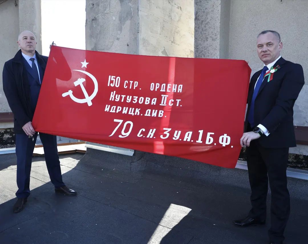 Член Постоянной комиссии Совета Республики по образованию, науке, культуре и социальному развитию Игорь Гедич совместно с помощником Президента Республики Беларусь — инспектором по Гродненской области ЮриемКараевым приняли участие в торжественном установлении Знамени Победы на Гродненском областном драматическом театре, 09.05.2022
