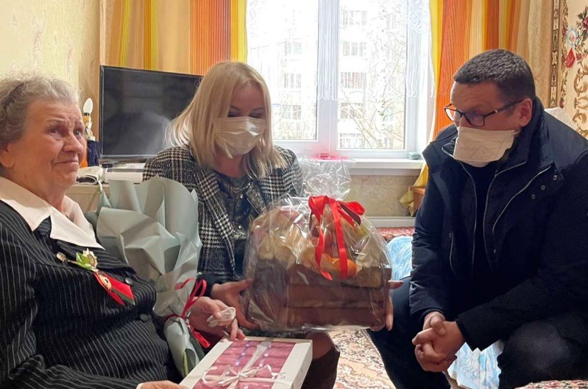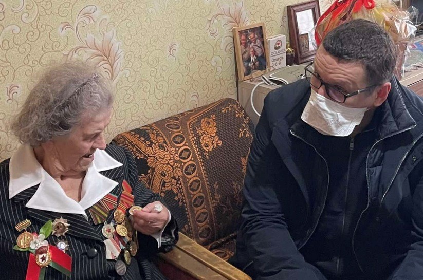 Член Постоянной комиссии Совета Республики по образованию, науке, культуре и социальному развитию Константин Дроздовский посетил участника Великой Отечественной войны Надежду Владимировну Штыркову и вручил материальную помощь ко Дню Победы, Минск, 25.04.2022