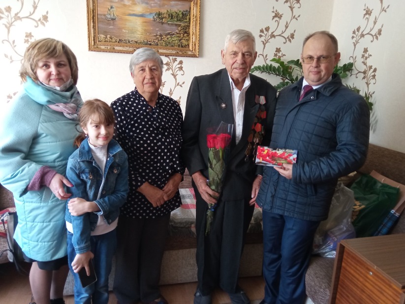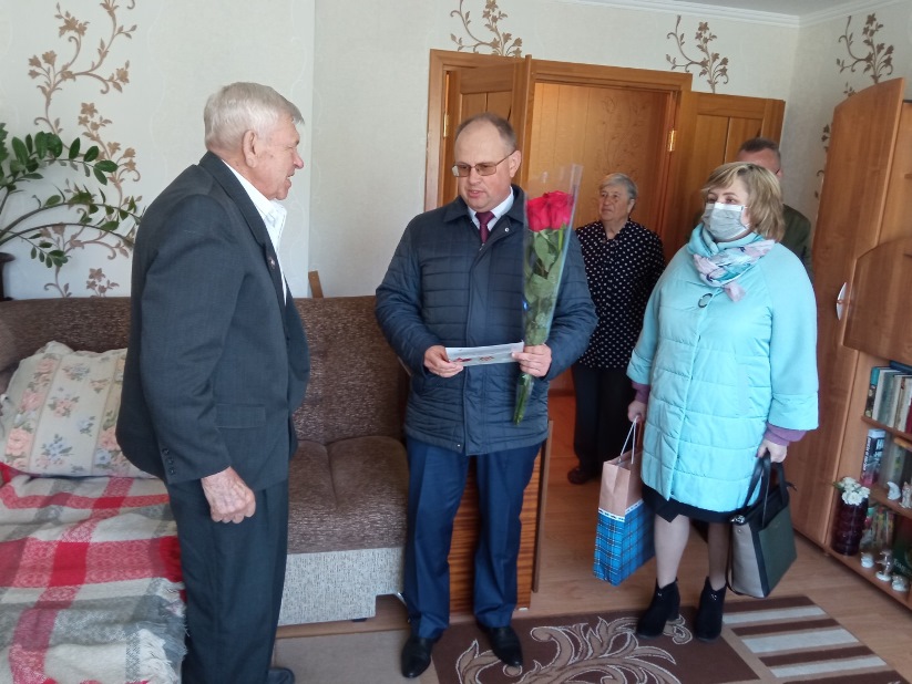 Посещение членом Постоянной комиссии Совета Республики по региональной политике и местному самоуправлению, директором коммунального сельскохозяйственного унитарного предприятия «Совхоз-комбинат «Заря» Олегом Слинько труженика тыла Митрофанова Юрия Александровича ко Дню Победы.