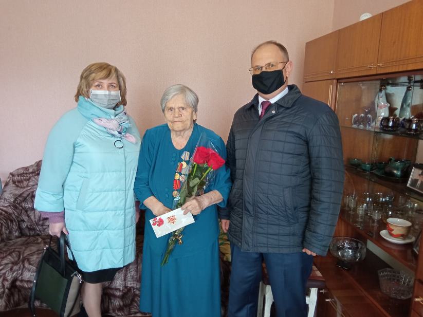 Посещение членом Постоянной комиссии Совета Республики по региональной политике и местному самоуправлению, директором коммунального сельскохозяйственного унитарного предприятия «Совхоз-комбинат «Заря» Олегом Слинько труженицу тыла Лаврук Анну Федоровну ко Дню Победы.