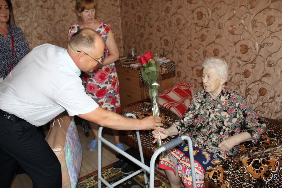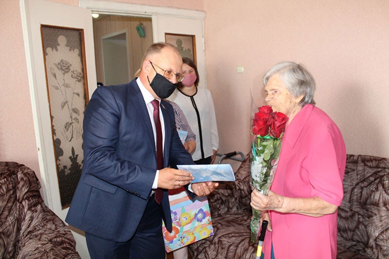 Посещение членом Постоянной комиссии Совета Республики по региональной политике и местному самоуправлению, директором коммунального сельскохозяйственного унитарного предприятия «Совхоз-комбинат «Заря» Олегом Слинько труженицы тыла Криевской Анны Яковлевны ко Дню Независимости Республики Беларусь