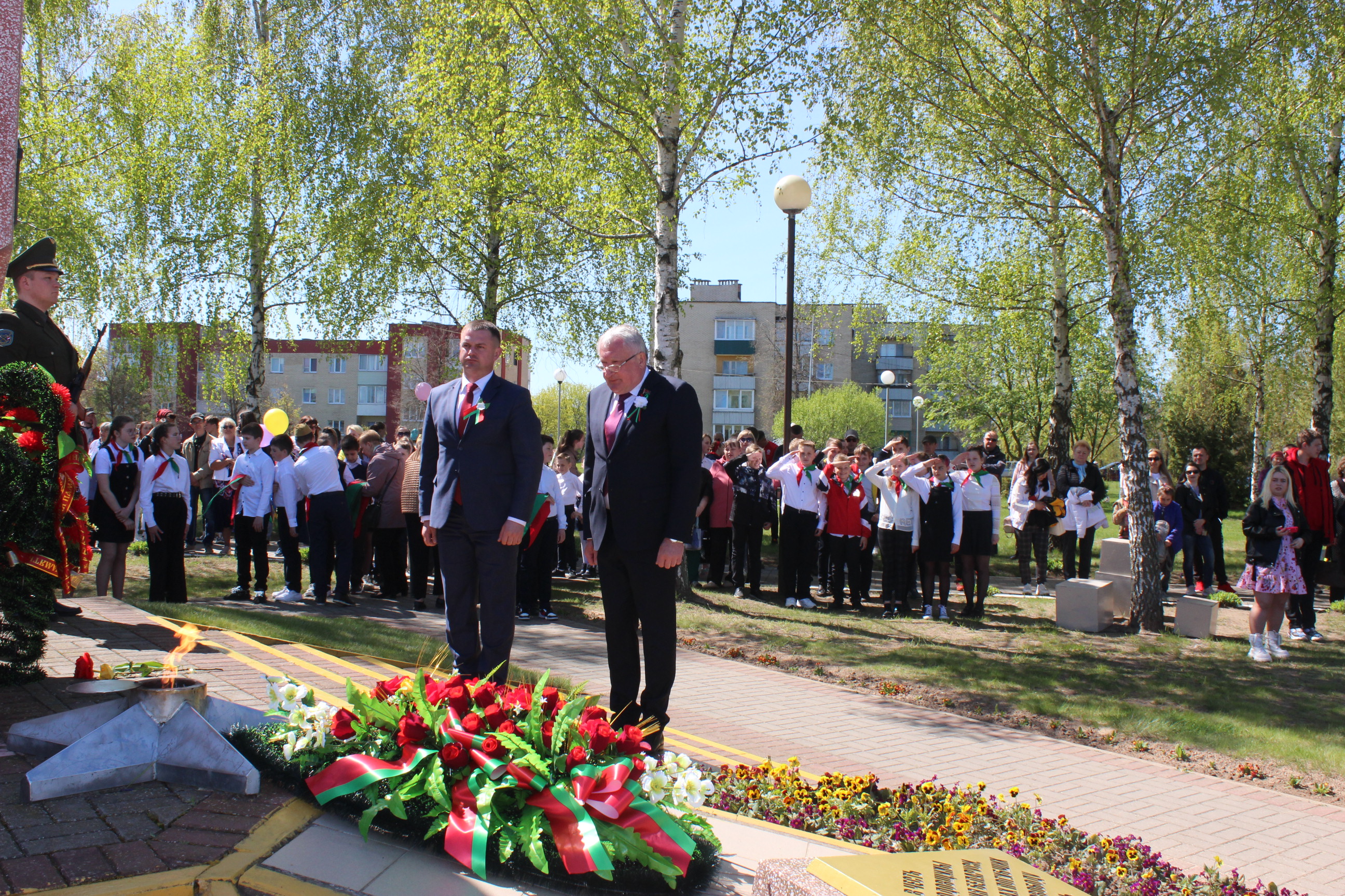 Член Постоянной комиссии Совета Республики по экономике, бюджету и финансам Василий Маркевич принял участие в торжественном возложении венка к памятнику землякам в рамках районного мероприятия «Ликуй в сердцах, Великая Победа!», аг. Мир Барановичского района Брестской области, 09.05.2022