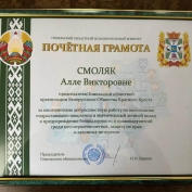 Член Совета Республики А.Смоляк награждена Почетной грамотой Гомельского облисполкома