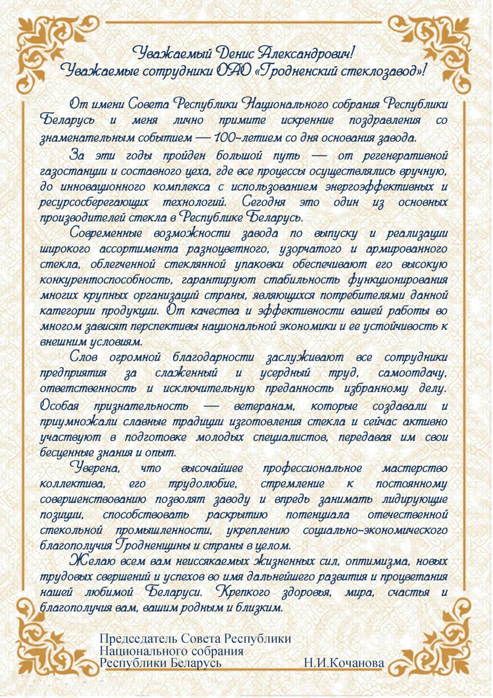 100 лет со дня основания ОАО «Гродненский стеклозавод»