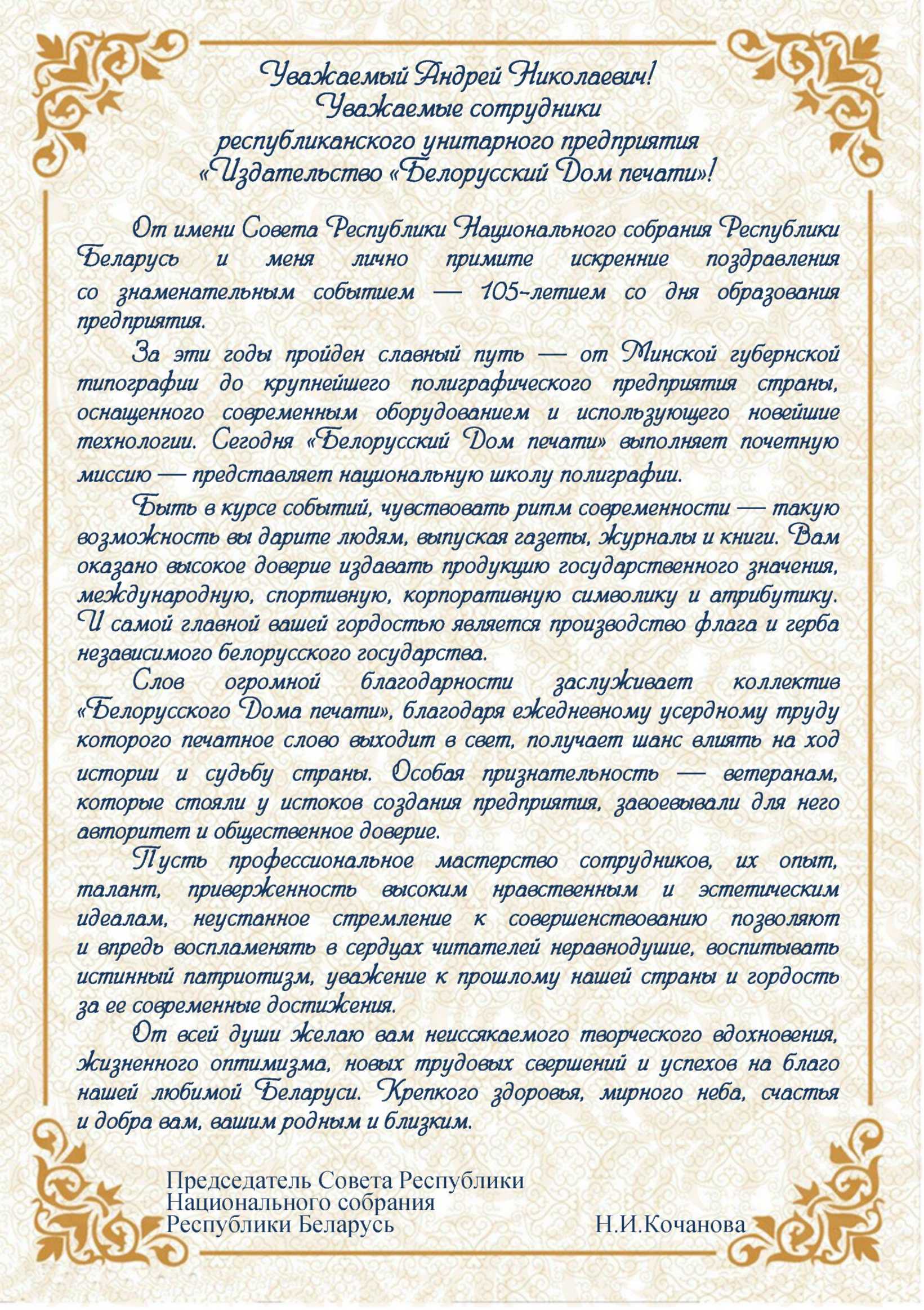 105 лет со дня образования республиканского унитарного предприятия «Издательство «Белорусский Дом печати»