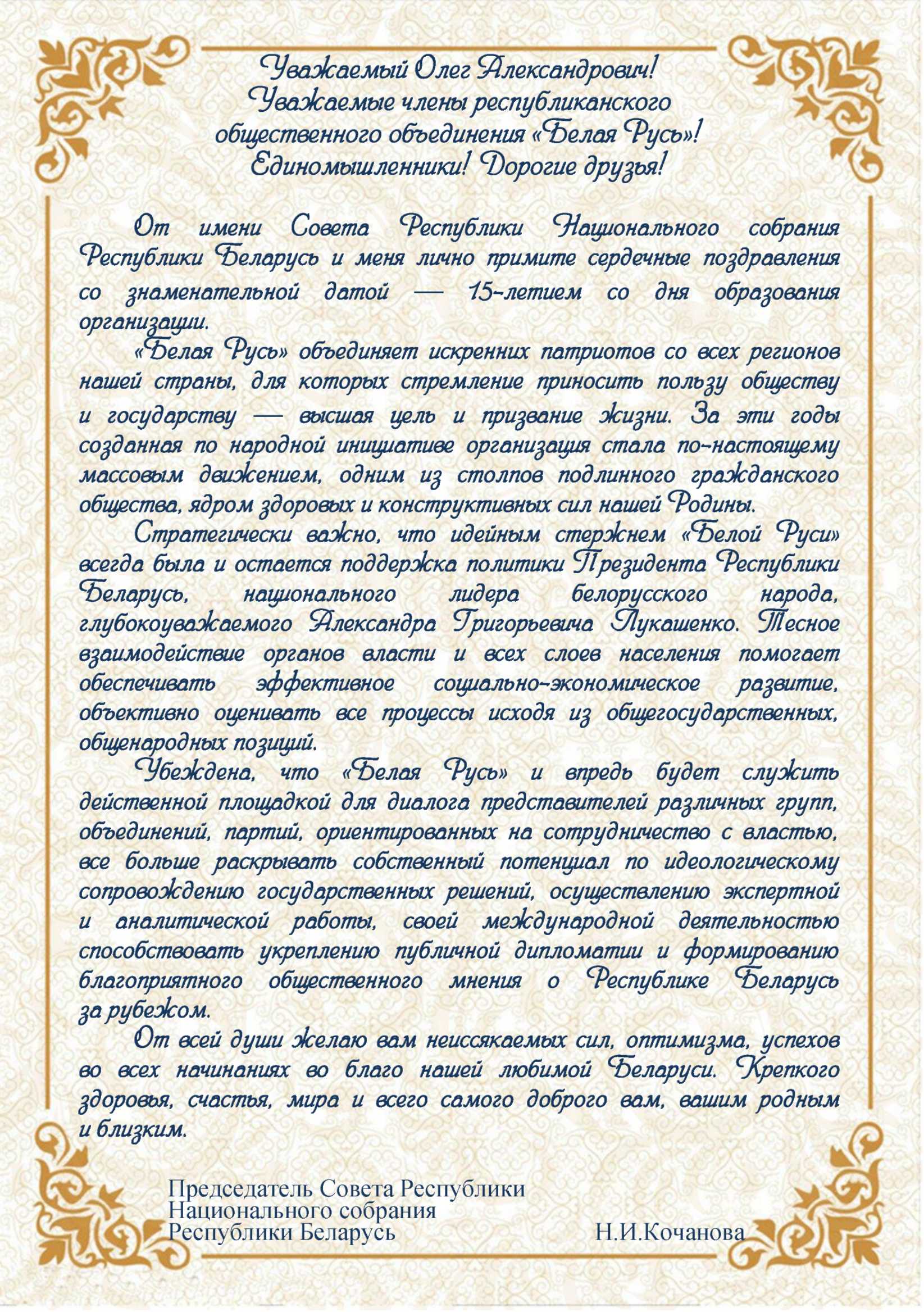 15 лет со дня образования республиканского общественного объединения «Белая Русь»