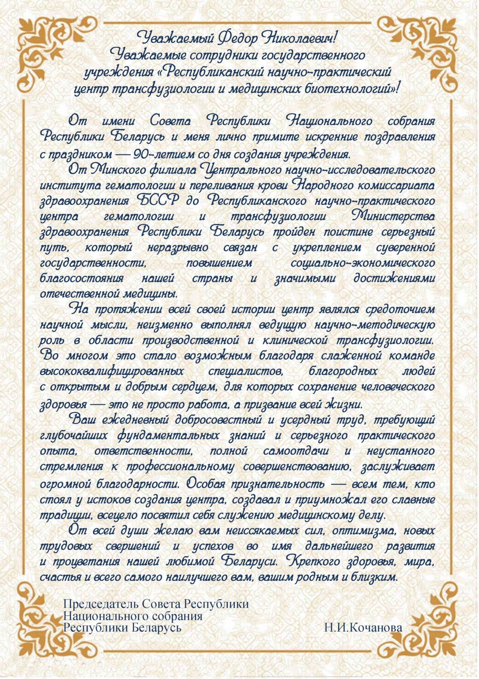90 лет со дня создания государственного учреждения «Республиканский научно-практический центр трансфузиологии и медицинских биотехнологий»