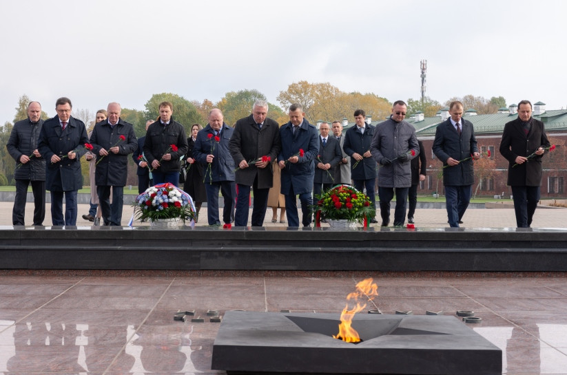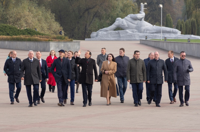 Для почетных гостей была проведена обзорная экскурсия по Брестской крепости, в ходе которой почетные гости возложили цветы к Вечному огню и почтили память героев минутой молчания.