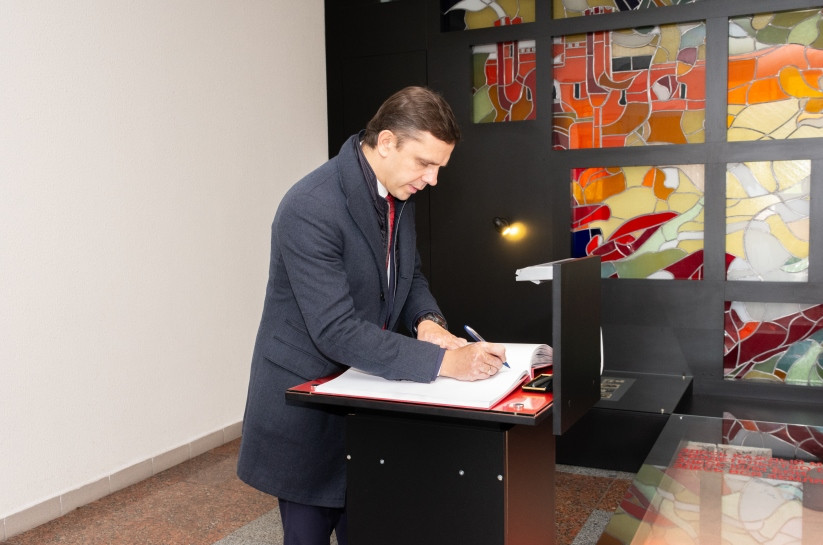 По окончании экскурсии губернатор Орловской области А.Клычков оставил памятную запись в Книге почетных гостей.