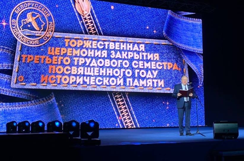 В ходе торжественной церемонии сенатор зачитал приветственный адрес от имени Председателя Совета Республики Национального собрания Республики Беларусь Натальи Кочановой, в котором отмечено: «Третий трудовой семестр стал яркой страницей личных биографий, неотъемлемой частью славной летописи нашей страны и целой эпохой созидательного труда. В Беларуси студотрядовское движение динамично развивается, обретает все больше единомышленников, объединяет активную, деятельную молодежь — тех, кто стремится реализовать свой потенциал, найти применение своим способностям, внести личный вклад в укрепление национальной экономики и социальной сферы».