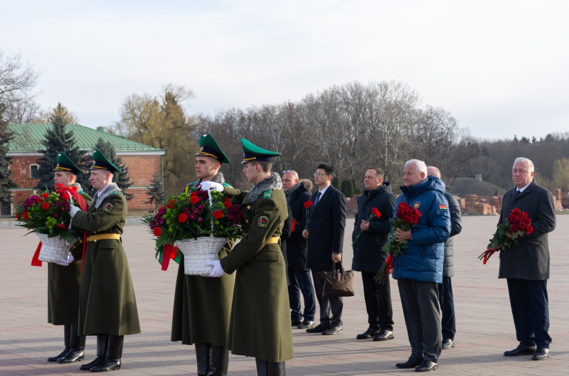 В рамках рабочего визита гости посетили ГУ «Мемориальный комплекс «Брестская крепость-герой», возложили цветы к Вечному огню и почтили память героев минутой молчания.