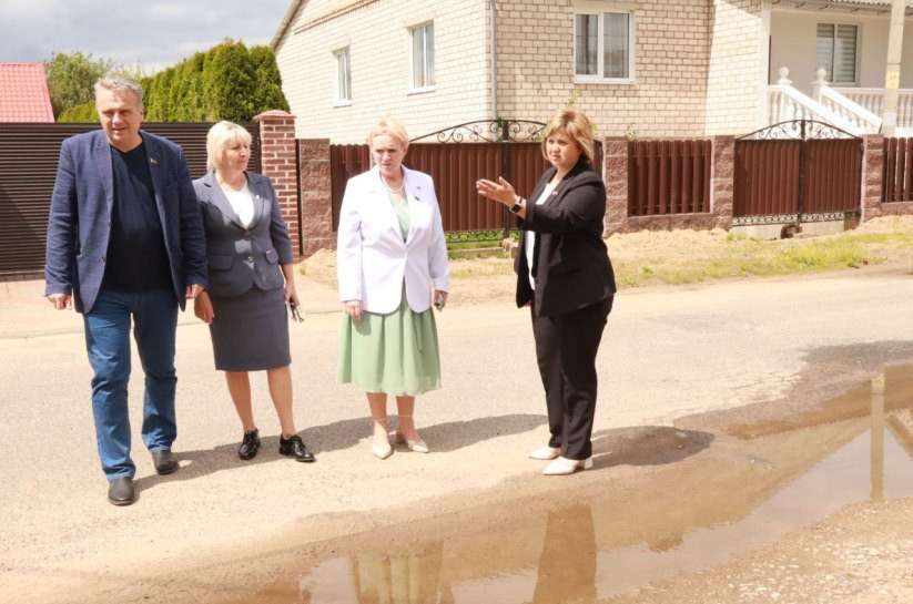 В ходе приема граждан к сенатору обратилась жительница деревни Рудавка Несвижского района с проблемным вопросом, касающимся плохого качества дороги, в связи с чем улица Янки Купалы, где проживает женщина, залита водой. Сразу же после окончания личного приема и прямой телефонной линии был организован выезд всех заинтересованных лиц по указанному адресу.