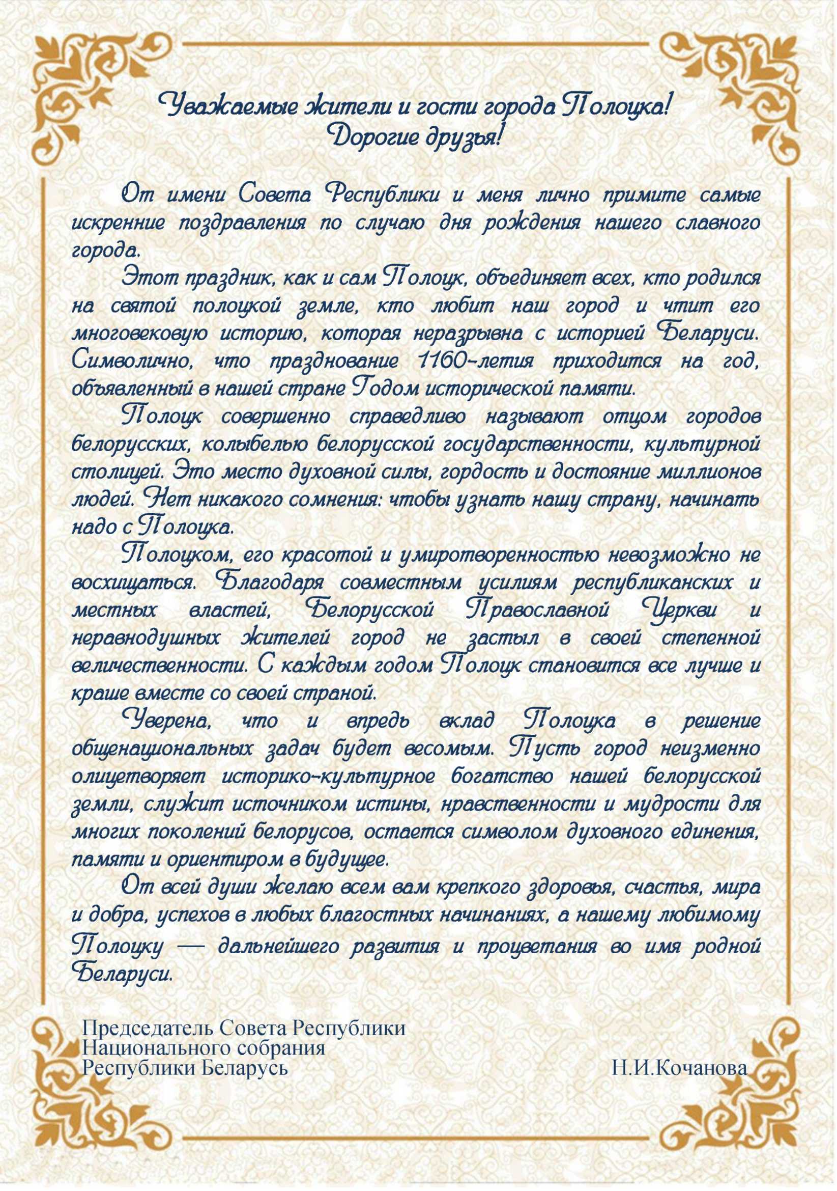Наталья Кочанова: «Мы извлекли ценные уроки из истории и осознаем, что мир - это величайшая ценность, требующая нашего постоянного внимания и решительных действий по ее защите»