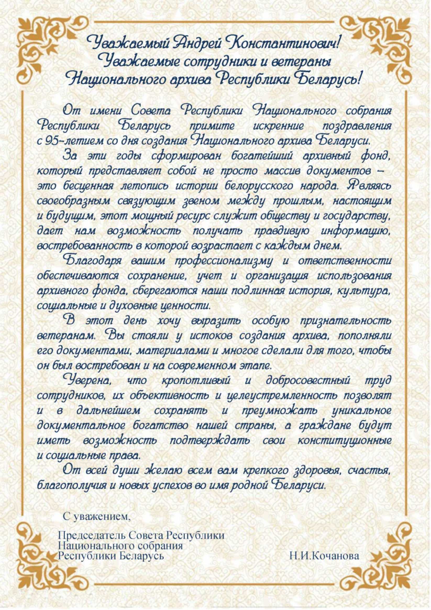Коллективу государственного учреждения «Национальный архив Республики Беларусь»