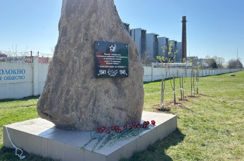 Аллея высажена кустами сирени с участием молодежного актива ОАО «Могилевхимволокно» возле памятного знака в честь 75-летия Великой Победы на площадке предприятия в городе Могилеве.