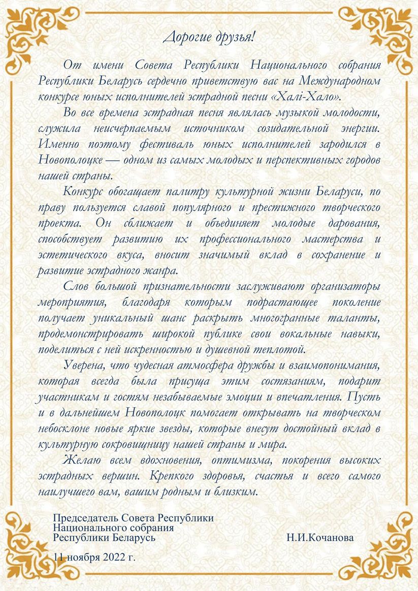 Организаторам, участникам и гостям Международного конкурса юных исполнителей эстрадной песни «Халі-Хало»