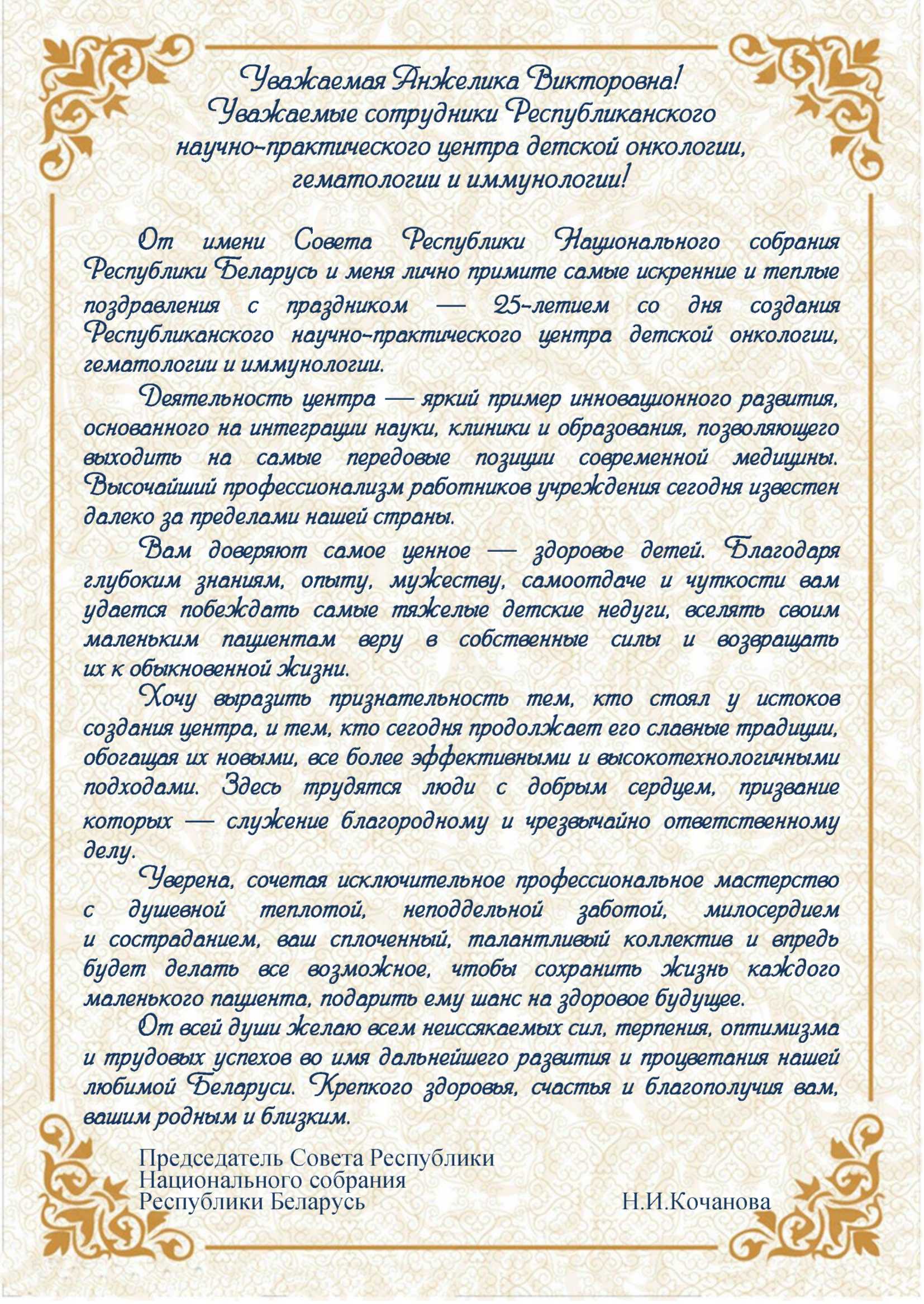 С 25-летием со дня создания Республиканского научно-практического центра детской онкологии, гематологии и иммунологии!