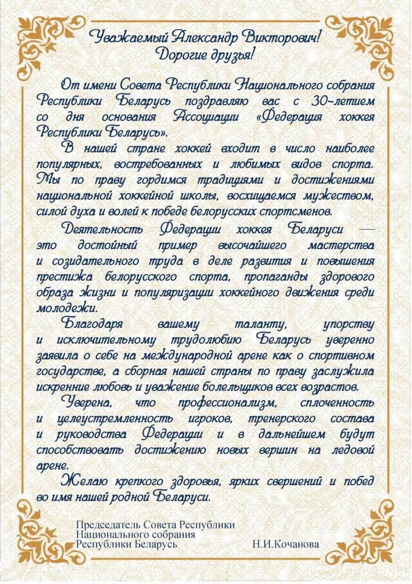 С 30-летием со дня основания Ассоциации «Федерация хоккея Республики Беларусь»!